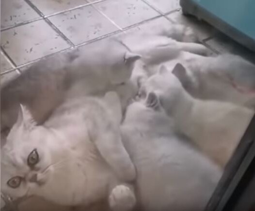 Rodzinie udało się wrócić do domu dopiero po 1.5 miesiąca. Jakież było ich zdziwienie, gdy wchodząc do mieszkania zobaczyli swoją kotkę, a obok niej cztery białe, puchate biegające kocięta!!