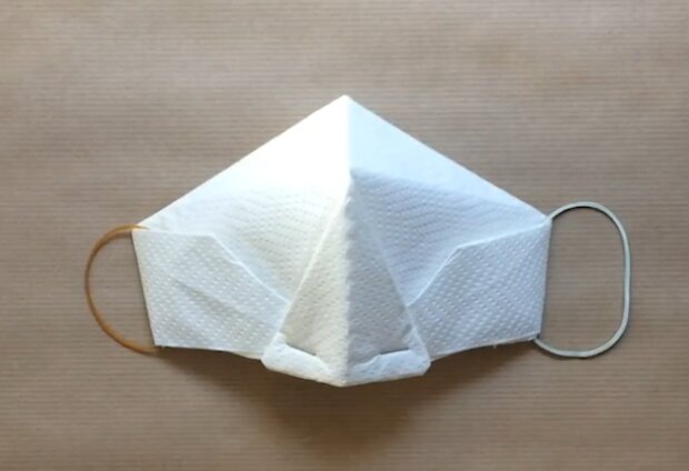 Do stworzenia maseczki wystarczą nam tylko: ręcznik papierowy, zszywacz, dwie gumki recepturki i... odrobina cierpliwości, by nauczyć się podstaw origami.