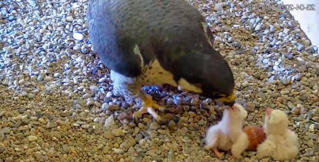 W pierwszych dniach po narodzinach to ojciec jest odpowiedzialny za zdobywanie pożywienia, w drugim tygodniu życia maluchów do polowania włącza się także matka. W trzecim tygodniu życia maluchom stale rośnie apetyt i są coraz bardziej samodzielne. To także moment, aby zaobrączkować ptaki. Zajmuje się tym Stowarzyszenie Na Rzecz Dzikich Zwierząt "Sokół".