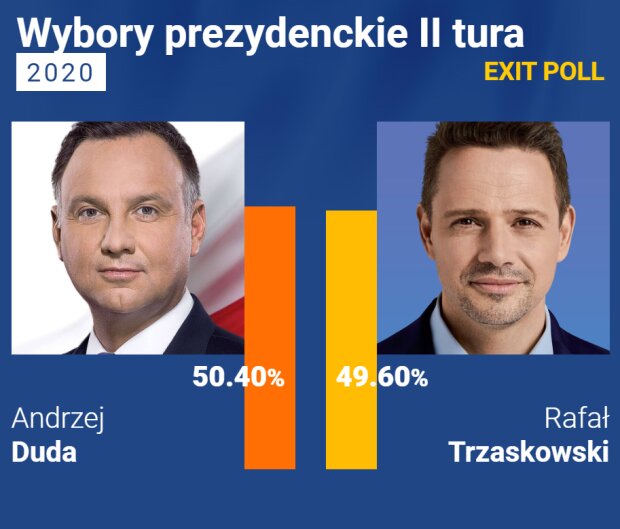 Andrzeja Dudę poparło 50,4 procent wyborców, Rafał Trzaskowski zdobył zaś 49,6 procent głosów. Różnica więc wynosi zaledwie 0,8%. Wszystko więc może się jeszcze wydarzyć.