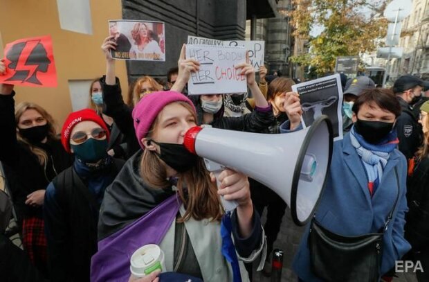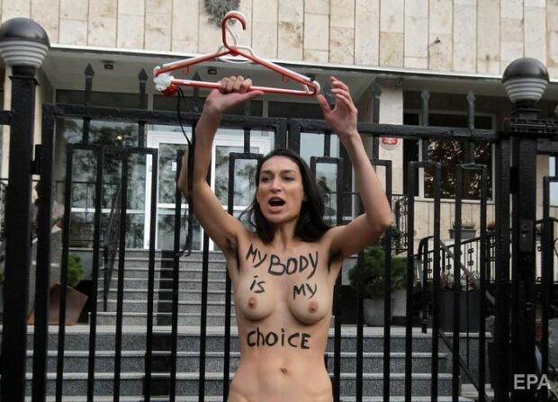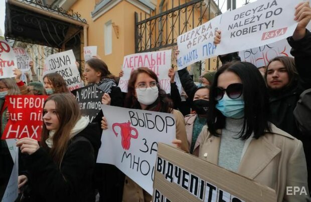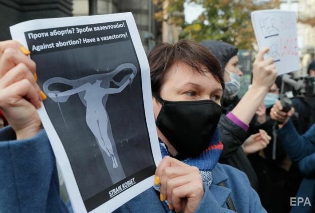 Protestowały także Ukrainki mieszkające w Polsce. Jedna z kobiet całkowiecie była rozebrana. Na jej ciele mogliśmy zobaczyć nadpis: "My body is my choice" (Moje ciało jest moim wyborem). Inne kobiety w maseczkach na twarzach trzymali plakaty z nadpisami: "Wybór nałeży do mnie", "Wolność wyboru".
