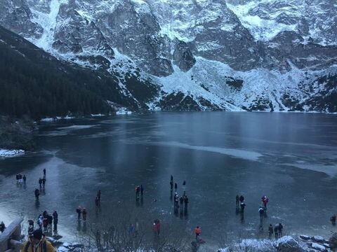 Dramat nad Morskim Okiem... Lód ma 5 do 6 cm grubości, a na lodzie masa ludzi... Co roku te same apele... Czy to już tradycja, że musi dojść do tragedii i kiedy do niej dojdzie... 🤷♂️ Drodzy turyści, bardzo Was prosimy o rozsądek...