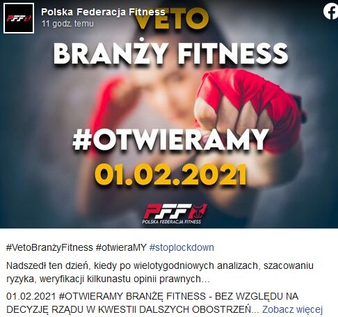 W mediach społecznościowych Poslkiej Federacji Fitness pojawił sie komunikat: