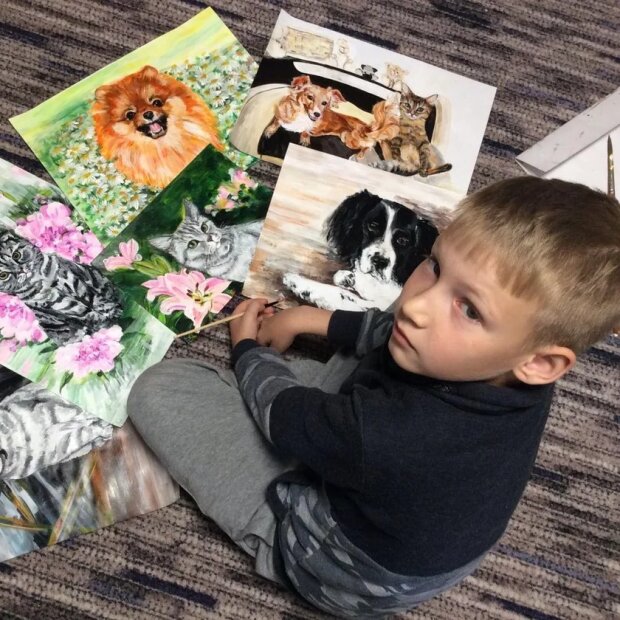 Chłopiec nie dość, że pamięta wszystkie imiona tych zwierząt, które maluje, to jeszcze z niektórymi się zaprzyjaźnia.