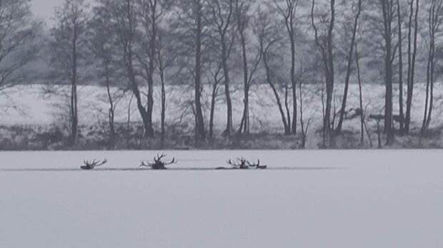Uciekające w popłochu zwierzęta straciły orientacje i wystraszone wbiegły na lód. Niestety pod naporem kopyt całego stada, lód nie wytrzymał. Zwierzęta znalazły się w lodowatej wodzie.